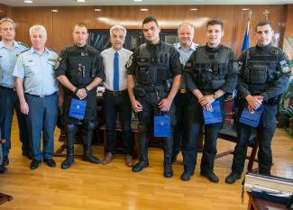 Τους αστυνομικούς υποδέχτηκαν και συνεχάρησαν προσωπικά σήμερα, στο Υπουργείο Προστασίας του Πολίτη, ο Γενικός Γραμματέας Δημόσιας Τάξης Δημήτρης Αναγνωστάκης και ο Αρχηγός της ΕΛ.ΑΣ., Αντιστράτηγος Κωνσταντίνος Τσουβάλας.