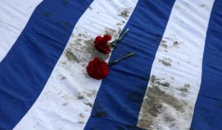 Ολοκληρώθηκε η πορεία του «μπλοκ» με την αιματοβαμμένη σημαία του Πολυτεχνείου, μπροστά από την πρεσβεία των ΗΠΑ.