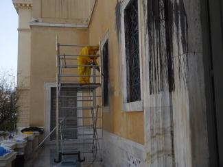 Τώρα ειδικό συνεργείο με χημικά και με πιεστικό αφαίρεσαν το μαύρο χρώμα από τις μαρμάρινες επιφάνειες της πρόσοψης και την τοιχοποιία του Συμβουλίου της Επικρατείας. Η αφαίρεση του χρώματος από τα μάρμαρα έγινε σταδιακά, κομμάτι-κομμάτι.