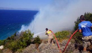 Οι φλόγες έφτασαν πολύ κοντά σε σπίτια όμως αντιμετωπίστηκαν άμεσα και τώρα αντιμετωπίζονται όσες μικροεστίες βρίσκονται εκεί, ώστε να κινηθούν οι δυνάμεις ψηλά προς την κορυφογραμμή όπου κινείται πλέον το πύρινο μέτωπο.