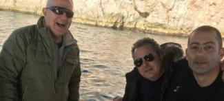Η φωτογραφία απεικονίζει τον πρόεδρο των Ανεξαρτήτων Ελλήνων δίπλα σε καρχαρία μήκους 2,5 μέτρων που έπιασε ψαράς ανοιχτά της Υδρας.