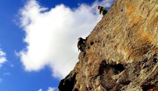 Όποιος έχει ανέβει στους καταρράκτες της Παλαιόπολης ξέρει. Όλοι οι άλλοι που τους έχουμε δει από κάτω υποψιαζόμαστε. Είναι από τα πλέον δύσκολα ορειβατικά σημεία των Κυκλάδων. Κι ίσως και της Ελλάδος. Να ανεβαίνεις ή να κατεβαίνεις κρεμασμένος από σχοινιά σε ένα γκρεμό εκατντάδων μέτρων. Σε μια πλαγιά που ξεκινά από τα 997 μέτρα ύψο;, στην Κουβάρα, και φτάνει μέχρι το πάνω μέρος του χωριού που είναι γύρω στα 300 μέτρα. Εκεί διάλεξαν οι πυροσβέστες της Άνδρου και οι εκπαιδευτές της 1ης ΕΜΑΚ να κάνουν την εκπαίδευση τους στην ορεινή διάσωση!