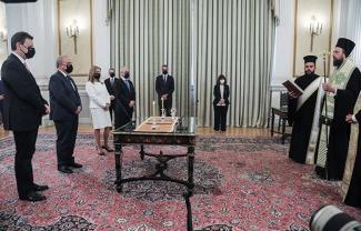 Ενώπιον της Προέδρου της Δημοκρατίας, Κατερίνας Σακελαροπούλου και παρουσία του Πρωθυπουργού, Κυριάκου Μητσοτάκη, ορκίστηκαν σήμερα από τον Επίσκοπο Ωρεών κ. Φιλόθεο, οι νέοι υπουργοί και υφυπουργοί.