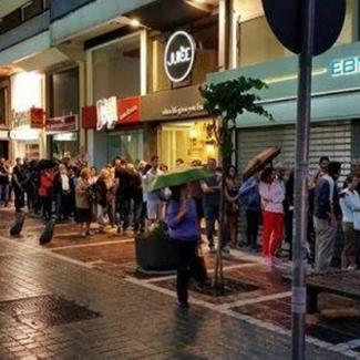 Ειδικά οι συνταξιούχοι, άνθρωποι μεγαλύτερης ηλικίας, βρίσκονται σχεδόν νυχθημερόν έξω από τις τράπεζες, περιμένοντας υπομονετικά στην ουρά, για να κάνουν ανάληψη.