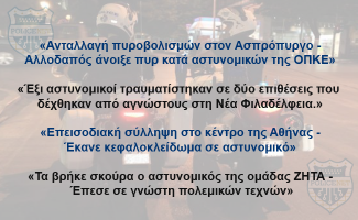 - «Έξι αστυνομικοί τραυματίστηκαν σε δύο επιθέσεις που δέχθηκαν από αγνώστους στη Νέα Φιλαδέλφεια.»