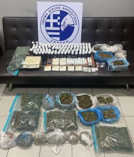 Σε έρευνα που ακολούθησε στην οικία του, στην οποία συνέδραμε και ο αστυνομικός σκύλος ανίχνευσης ναρκωτικών «Άτλας», βρέθηκαν και κατασχέθηκαν: