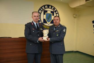 Μετά το πέρας της τελετής, ο Διοικητής της Σχολής Αστυφυλάκων, επέδωσε αναμνηστικά δώρα στον Γενικό Επιθεωρητή Αστυνομίας Βορείου Ελλάδος, Αντιστράτηγο Ανδρέα Αποστολόπουλο.