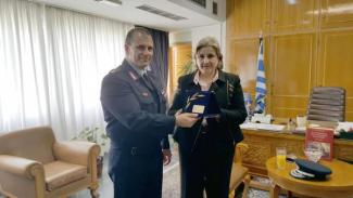 Η αντιπεριφερειάρχης, σύμφωνα με την ανακοίνωση που εκδόθηκε, εξέφρασε τη στήριξη της Περιφέρειας στο έργο της Αστυνομίας και επέδωσε στον νέο γενικό τιμητική πλακέτα.