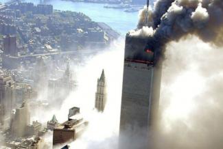 Είναι τρομερό το πλάνο από ψηλά που δείχνει το τεράστιο σύννεφο σκόνης να καλύπτει σαν γιγάντιο κύμα, τα οικοδομικά τετράγωνα δίπλα στο παγκόσμιο κέντρο εμπορίου.