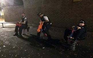 Σάλο έχει προκαλέσει η φωτογραφία που ανέβασε στο τουίτερ αστυνομικός του Λονδίνου, που απεικονίζει εκείνον και τους συναδέλφους του να παλιμπαιδίζουν πάνω σε αλογάκια παιδικής χαράς, εν ώρα υπηρεσίας.