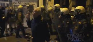 Οι αστυνομικοί, που είχαν αποκλείσει το δρόμο, δεν του επέτρεπαν να περάσει, καθώς όπως του είπαν γίνονταν επεισόδια εκείνη την ώρα πιο κάτω και φρόντιζαν για τη δική του προστασία. Ο ίδιος όμως επέμεινε, λέγοντας πως μπορούσε να προσέξει τον εαυτό του και παρότι οι άνδρες των ΜΑΤ έστεκαν ατάραχοι μπροστά του, εκείνος δεν έχασε το κέφι του, γνωρίζοντας την αποθέωση από τον κόσμο που είχε συγκεντρωθεί στο σημείο και τον χειροκροτούσε.