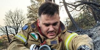 Μας χάρισε μια από τις πιο συγκλονιστικές φωτογραφίες. Ο πυροσβέστης δίνει νερό στη χελώνα μέσα σε ένα τοπίο καμένο. Η ζωή και ανθρωπιά, η φύση, νικάει το κακό. Ο άνθρωπος άλλωστε, βρίσκει πάντα το τρόπο να υπερβαίνει την καταστροφή και να ποτίζει την ελπίδα.