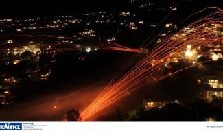 Μόλις οι καμπάνες σήμαναν 11 το βράδυ, οι πρώτες μαζικές ρίψεις έκαναν τη νύχτα μέρα ενώ μία ώρα αργότερα οι ρουκέτες μαζί με εκατοντάδες πυροτεχνήματα μετέφεραν το χαρμόσυνο μήνυμα της Ανάστασης του Κυρίου.