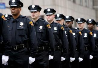 Το ακροατήριο, αρκετές εκατοντάδες αστυνομικοί, ξέσπασαν σε γέλια και χειροκροτήματα με αρκετούς να φωνάζουν ρυθμικά «ΗΠΑ-ΗΠΑ»