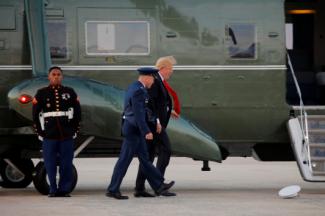 Ο Τραμπ το είδε και πριν μπει στο ελικόπτερο αμέσως το σήκωσε και το έβαλε ξανά στο κεφάλι του πεζοναύτη, θέλοντας να κάνει την καλή πράξη της ημέρας.