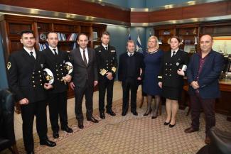 Τους δύο Κελευστές που υπηρετούν στο Λιμεναρχείο Κυλλήνης που την προπαραμονή των Χριστουγέννων έσωσαν μια γυναίκα επιβάτη πλοίου από βέβαιο θάνατο, τίμησε μεταξύ άλλων ο υπουργός Ναυτιλίας και Νησιωτικής Πολιτικής, Γιάννης Πλακιωτάκης στην εκδήλωση της κοπής της Πρωτοχρονιάτικης πίτας του Υπουργείου.