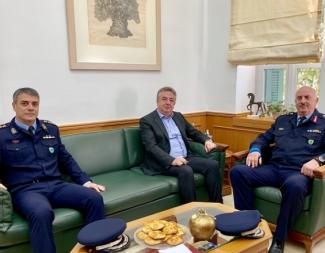 Τον Περιφερειάρχη Κρήτης Σταύρο Αρναουτάκη επισκέφθηκαν σήμερα ο Γενικός Περιφερειακός Αστυνομικός Διευθυντής Κρήτης, Υποστράτηγος Κώστας Λαγουδάκης και ο νέος Αστυνομικός Διευθυντής Ηρακλείου, Αστυνομικός Διευθυντής Νίκος Σπυριδάκης, στο πλαίσιο της καλής συνεργασίας που υπάρχει με την Περιφέρεια Κρήτης και με αφορμή τη ανανέωση της θητείας του Στρατηγού και της ανάληψης των καθηκόντων του Αστυνομικού Διευθυντή Ηρακλείου.