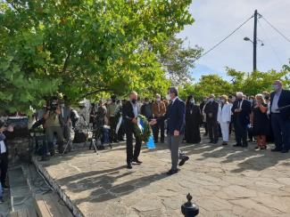 Στο πλαίσιο του εορτασμού παρέστη στην επιμνημόσυνη δέηση, στον Ιερό Ναό Αγίου Γεωργίου και κατέθεσε στεφάνι στο Μνημείο Ολοκαυτώματος Λιγκιάδων .
