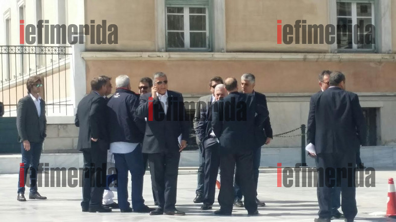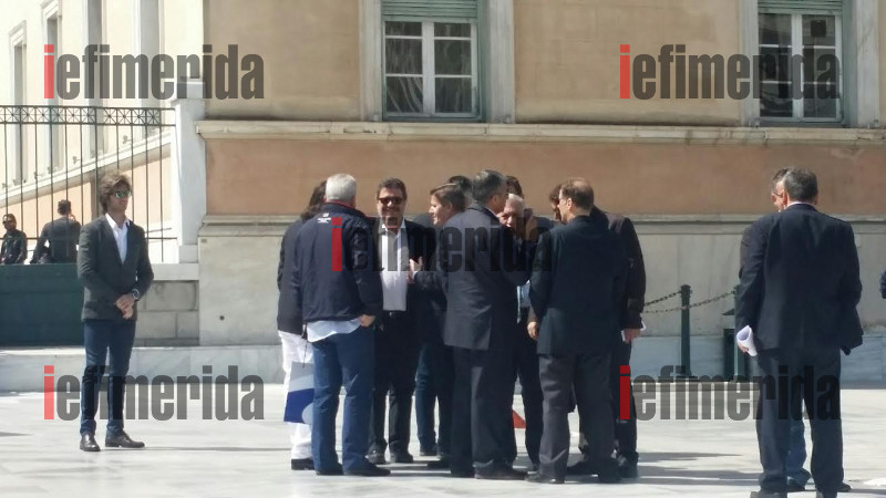 Μια ομάδα από αυτούς, μάλιστα, μπήκε και στο προαύλιο της Βουλής περιμένοντας για το αν θα τους δοθεί άδεια να μπουν και μέσα να κάνουν κάποιες συνομιλίες ακόμη. Οπως φαίνεται και στις φωτογραφίες, στην ομάδα των δημάρχων διακρίνεται φυσικά ο πρόεδρος της ΚΕΔΕ Γιώργος Πατούλης αλλά και ο Ηλίας Ψινάκης ο οποίος έκανε και πάλι τη διαφορά: Λευκό παντελόνι, μπλέιζερ, κόκκινη γραβάτα, κόκκινο μαντίλι και σε απόσταση αναπνοής πάντα ο στενός του συνεργάτης (ο νεαρός με τα γυαλιά καθρέφτες).
