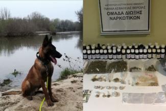 Σε έρευνα που ακολούθησε στην οικία του, με τη συνδρομή και του αστυνομικού σκύλου ανίχνευσης ναρκωτικών ουσιών « Booker » της Υποδιεύθυνσης Ειδικών Αστυνομικών Δυνάμεων Βορείου Ελλάδος, βρέθηκαν και κατασχέθηκαν:
