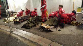 Οι Σαμαρείτες του Ερυθρού Σταυρού (φωτο) και το ΕΚΑΒ, χρειάστηκε να προφέρουν τις πρώτες βοήθειες σε δεκάδες περιστατικά, ενώ σε πολλές περιπτώσεις η προσέγγιση των ατόμων που είχαν χάσει ακόμα και τις αισθήσεις τους ήταν δύσκολη λόγω των χιλιάδων καρναβαλιστών και θεατών που έχουν κατακλύσει το κέντρο της Πάτρας