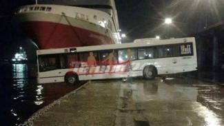 Στο παλιό λιμάνι της Πάτρας, λεωφορείο βρέθηκε με την μπροστινή όψη κυριολεκτικά στον αέρα, έτοιμο να βρεθεί μέσα στη θάλασσα.