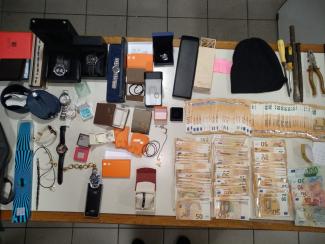 Στο πλαίσιο των ερευνών, βρέθηκαν και κατασχέθηκαν διαρρηκτικά εργαλεία και το μεγαλύτερο μέρος των κλοπιμαίων.
