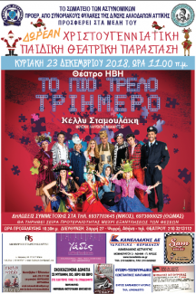 Το σωματείο μας πάντα δίπλα στις ανάγκες των συναδέλφων και ειδικά τις μέρες των Χριστουγέννων, για δεύτερη χρονιά, προσφέρει στα μέλη δωρεάν θεατρική παράσταση.