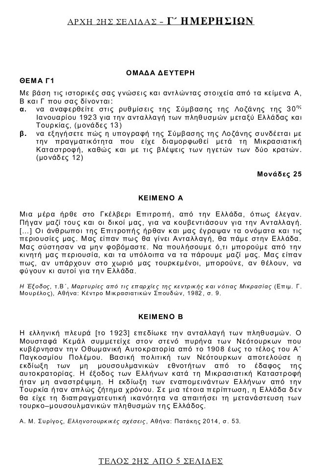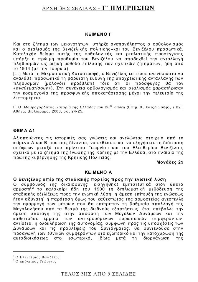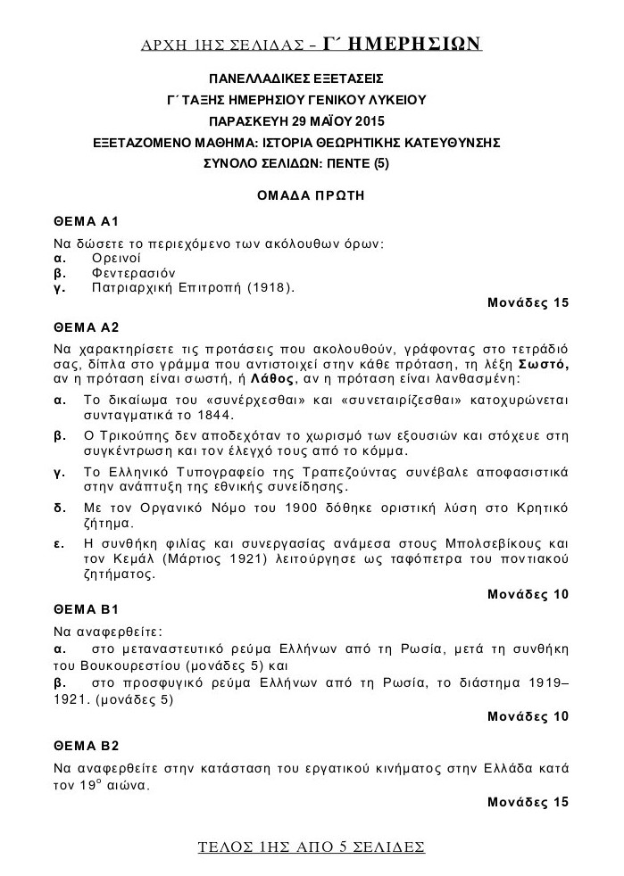 Τα θέματα στην Ιστορία Κατεύθυνσης