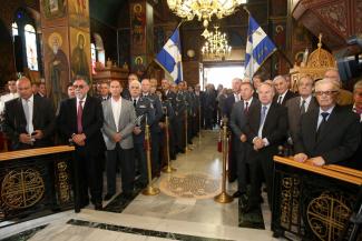 Υπουργείου Εσωτερικών και Διοικητικής Ανασυγκρότησης, κ. Τζανέτος Φιλιππάκος, σύσσωμη η Φυσική Ηγεσία της Ελληνικής Αστυνομίας με επικεφαλής τον Αρχηγό της Ελληνικής Αστυνομίας, Αντιστράτηγο Δημήτριο Τσακνάκη, καθώς και άλλοι ανώτατοι και ανώτεροι Αξιωματικοί.