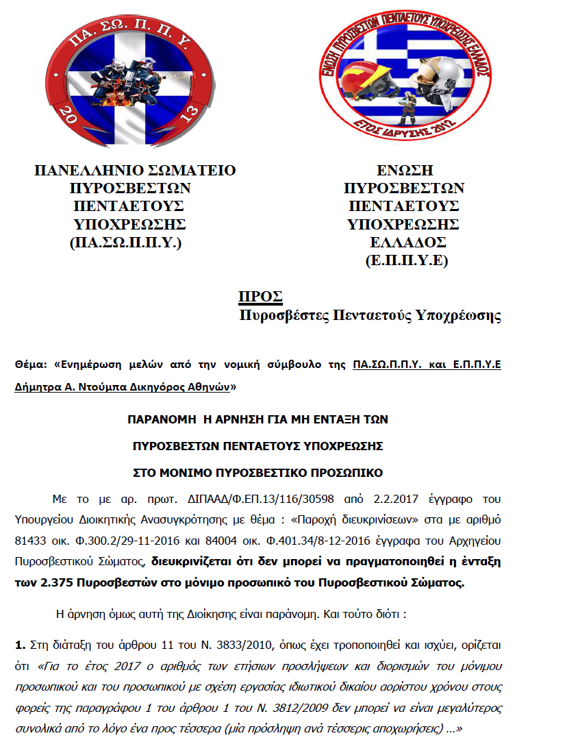 Εικόνα 12:14 | 05/02/2017 «Ενημέρωση μελών από την νομική σύμβουλο της ΠΑ.ΣΩ.Π.Π.Υ. και Ε.Π.Π.Υ.Ε Δήμητρα Α. Ντούμπα Δικηγόρος Αθηνών» ΓΙΑ ΝΑ ΤΟ ΔΕΙΤΕ ΠΑΤΗΣΤΕ ΕΔΩ forest-fighter-stereas.blogspot.gr