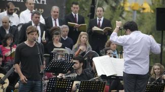 Ομάδα περίπου 40 αντιεξουσιαστών που φορούσαν όλοι κράνη, πλησίασε το βράδυ του Σαββάτου την πλατεία της Νέας Σμύρνης, όπου γίνεται η μεγάλη συναυλία αφιέρωμα στον Μίκη Θεοδωράκη και όπου ο Σάκης Ρουβάς ερμηνεύει το «Αξιον Εστί».