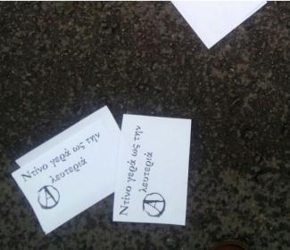 «Πριν από λίγη ώρα πραγματοποιήσαμε παρέμβαση με τρικάκια, συνθήματα και πανό έξω από το σπίτι του Λουκά Παπαδήμου, ως ένδειξη αλληλεγγύης στο σύντροφο μας απεργό πείνας - από σήμερα 25/02 και δίψας, Ντίνο Γιαγτζόγλου.