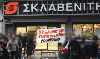Παρέμβαση στο υποκατάστημα της αλυσίδας σούπερ μάρκετ «Σκλαβενίτης» στην οδό Δροσοπούλου στα Πατήσια έκαναν μέλη του «Ρουβίκωνα».