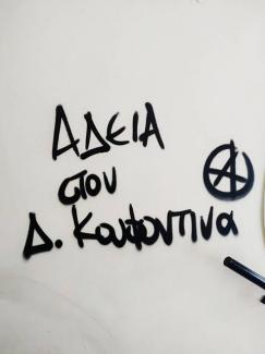 Σήμερα το πρωί πραγματοποιήθηκε παρέμβαση αντιπληροφόρησης με σπρέϊ, τρικάκια, κείμενα και εφημερίδες στο Ελληνο-Αμερικανικό εμπορικό επιμελητήριο από διάφορες συλλογικότητες πόλης, με στόχο την ανάδειξη της εμπλοκής του αμερικανικού κράτους στη διακοπή της άδειας του επαναστάτη πολιτικού κρατούμενου Δημήτρη Κουφοντίνα, που βρίσκεται στην 8η μέρα απεργίας πείνας.