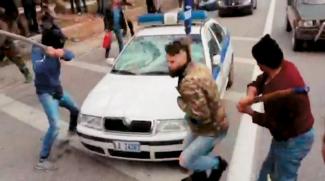 Οι εικόνες από τα επεισόδια που σημειώθηκαν την Παρασκευή στο Χαϊδάρι, όταν οι αγρότες προσπάθησαν να σπάσουν το μπλόκο των ΜΑΤ εκτοξεύοντας πέτρες και ξύλα, και οι δυνάμεις της αστυνομίας απάντησαν με χημικά, δείχνουν τον νεαρό αρχικά να «εξεγείρεται» για το μπλόκο της αστυνομίας και στη συνέχεια να σπάει με ακόμη δύο άτομα το περιπολικό που βρισκόταν στο σημείο.