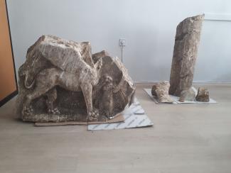 - τμήμα από την στενή πλευρά μαρμάρινης ανάγλυφης σαρκοφάγου με παράσταση μυθολογικού όντος, με σώμα λιονταριού και φτερά πουλιού (πιθανόν γρύπας), του οποίου δεν σώζεται η κεφαλή (σωζόμενου πλάτους 90 εκατοστών, σωζόμενου ύψους 66 εκατοστών και πάχους 20 εκατοστών), η οποία χρονολογείται κατά την ρωμαϊκή περίοδο και πιο συγκεκριμένα μεταξύ του 2ου και 3ου αιώνα μ.Χ.,