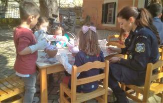 Συγκεκριμένα στο «εργαστήρι» που στήθηκε στο προαύλιο του 2ου Δημοτικού Παιδικού Σταθμού Κέρκυρας, τα παιδιά και οι αστυνομικοί αντάλλαξαν πολύτιμες συμβουλές που αφορούσαν στο βάψιμο των παραδοσιακών «μπότηδων», αλλά και στην ασφαλή μετακίνηση των παιδιών.
