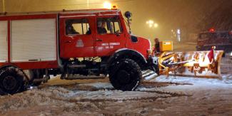 Σύμφωνα με την Πυροσβεστική Υπηρεσία που κλήθηκε στις 23:50, το όχημα ακινητοποιήθηκε όχι από χιονόπτωση αλλά από αιφνίδιο ανεμοσούρι.