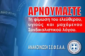 Σε έκτακτη συνεδρίαση του το Διοικητικό Συμβούλιο του Σ.Ε.Φ.Ε.Α.Α. , αναφορικά με την κίνηση πειθαρχικής δίωξης σε βάρος του Προέδρου του, για δηλώσεις του στα πλαίσια Συνδικαλιστικής έκφρασης με απειλή επιβολής ανώτερης πειθαρχικής ποινής (Αργία με απόλυση ή αργία με πρόσκαιρη παύση), ομόφωνα αποφάσισε τα εξής :