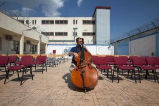 Το ρολόι δείχνει 5 και στο προαύλιο μπαίνουν οι κρατούμενοι, περίπου 70 άτομα που παρακολουθούν το συμβουλευτικό πρόγραμμα του ΚΕΘΕΑ Προμηθέας. Είναι διάφορων ηλικιών, Έλληνες και ξένοι. Φοράνε τα καλά τους ρούχα και κάθονται περιμετρικά στις καρέκλες. Μία ομάδα κρατουμένων διαβάζει μηνύματα κατά των ναρκωτικών και περιγράφει συγκινητικά την ομορφιά της ζωής εκεί έξω, για να ξεσπάσουν όλοι σε χειροκροτήματα. Έπειτα, η μουσική αρχίζει. Πουθενά στη φυλακή, στα προαύλια, τις πτέρυγες και τα κελιά, δεν ακούγεται τώρα το παραμικρό. Μια συμφωνική ορχήστρα παίζει σε οργασμό απέναντι σε δεκάδες κρατούμενους που έχουν κολλημένο το βλέμμα στους μουσικούς, στο μέσον μιας αυλής περίκλειστής με μαντρότοιχο, συρματοπλέγματα και κάμερες ασφαλείας, στο πιο άχαρο μέρος της Δυτικής Θεσσαλονίκης.