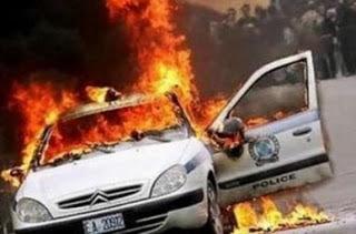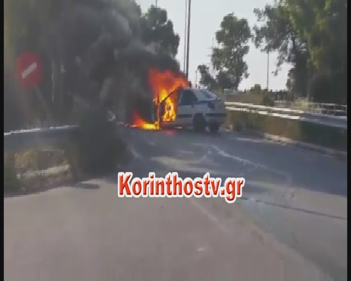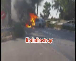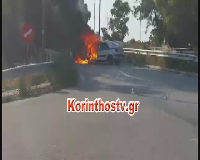 Στις φλόγες τυλίχθηκε εχτές το πρωί ένα περιπολικό της ΕΛΑΣ.. εξετράπη της πορείας του ενώ βρισκόταν εν κινήσει στον Ισθμό της Κορίνθου.