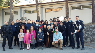 Οι… πρωταγωνιστές αστυνομικοί του βίντεο, καθώς και η γνωστή ηθοποιός Τιτίκα Σαριγκούλη, φωτογραφήθηκαν κατά τη διάρκεια του γυρίσματος, χαμογελώντας μπροστά στην κάμερα.