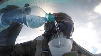 Αυτό το εντυπωσιακό βίντεο δείχνει τη στιγμή που ένας πιλότος, εν ώρα πτήσης, βάζει νερό και πίνει από ένα ποτήρι.