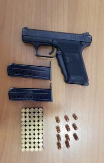 Κατασχέθηκαν το πιστόλι, τα φυσίγγια, οι γεμιστήρες και η θήκη του όπλου.
