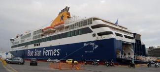 Το επιβατηγό-οχηματαγωγό Blue Star Delos, με 76 άτομα πλήρωμα, ήταν το πρώτο πλοίο της ακτοπλοΐας που εισήλθε -λίγα λεπτά μετά την έλευση του νέου έτους- στο λιμάνι του Πειραιά.