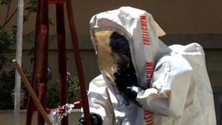 Σπεύδουν στο σημείο με τέσσερα οχήματα, ένα εξ αυτών είναι το χημικό αυτοκίνητο. Δυο Πυροσβέστες, φορώντας τις ειδικές στολές τύπου Α’, όπως ορίζει το πρωτόκολλο αντιμετώπισης ανάλογων περιστατικών, προσεγγίζουν το σημείο και εισέρχονται σε αυτό.