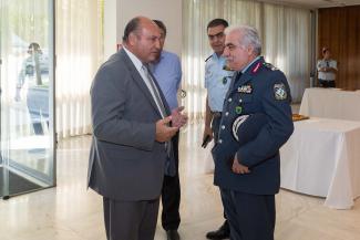 Από πλευράς Ελληνικής Αστυνομίας παρέστησαν ο Προϊστάμενος Επιτελείου του Αρχηγείου Ελληνικής Αστυνομίας, Αντιστράτηγος Μιχαήλ Καραμαλακης, η Γενικός Επιθεωρητής Αστυνομίας Αλλοδαπών και Προστασίας Συνόρων, Αντιστράτηγος Ζαχαρούλα Τσιριγώτη, ο Γενικός Επιθεωρητής Αστυνομίας Νοτίου Ελλάδος, Αντιστράτηγος Χρήστος Δραγατάκης, ο Γενικός Αστυνομικός Διευθυντής Αττικής, Υποστράτηγος Χρήστος Παπαζαφείρης, οι Προϊστάμενοι των Κλάδων του Αρχηγείου, Διευθυντές Διευθύνσεων και αυτοτελών Υπηρεσιών του Αρχηγείου, καθώς και άλλοι Αξιωματικοί και αστυνομικό προσωπικό.