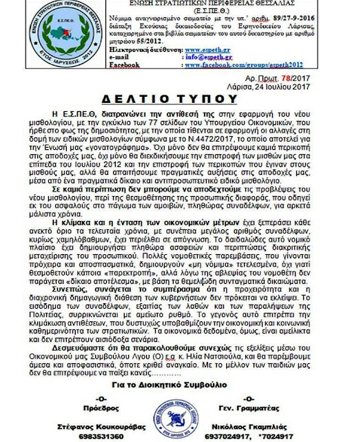 Υστερόγραφο: Για το θέμα του νέου μισθολογίου δεν χρειάσθηκε να κάνουμε ερώτηση αφού λίγες μέρες πριν η ΕΣΠΕΘ εξέδωσε Δελτίο Τύπου διατρανώνοντας την αντίθεσή της στην εφαρμογή του, χαρακτηρίζοντας το ως «γονατογράφημα». Διαβάστε το....