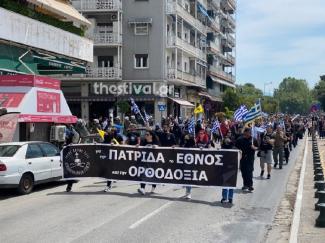 Πορεία πραγματοποιούν αυτή την ώρα στη Λεωφόρο Νίκης μέλη της εθνικιστικής οργάνωσης, Ιερός Λόχος, με βασικό θέμα το μεταναστευτικό,